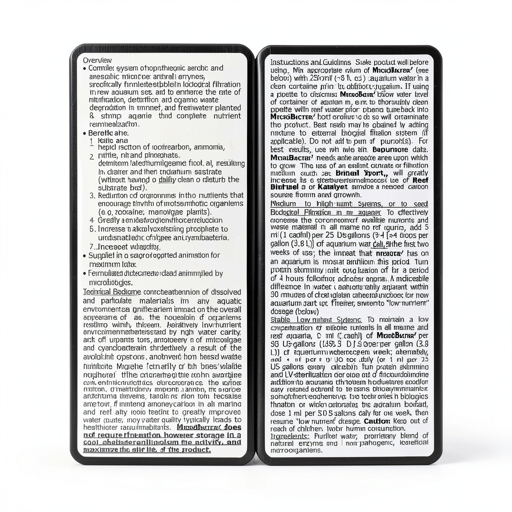 MicroBacter7 is ideal for aquarium enthusiasts seeking to maintain a healthy aquatic environment. It is used in both home and professional aquaria to reduce organic carbon, ammonia, nitrite, nitrate, phosphate, and hydrogen sulfide. Target audiences include hobbyists and breeders who prioritize water clarity and fish health. Apply by shaking the bottle well, mixing with 250 ml of aquarium water in a clean container, and adding it to the tank. For best results, use in established or new setups to accelerate biological filtration and stabilize water parameters.